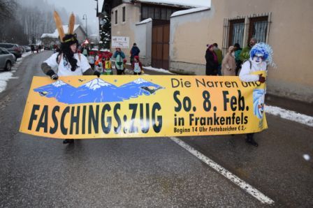350 Masken und 1.000 Besucher trotzten dem Schneetreiben und feierten am 8. Februar einen großartigen Faschingsnachmittag. Die Marktgemeinde Frankenfels lud nach sechsjähriger Pause wieder zu einem tollen Faschingsumzug. Das Motto am Beginn des NÖ Landesausstellungsjahres befasste sich („no na“) mit der großen Landesschau.