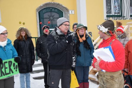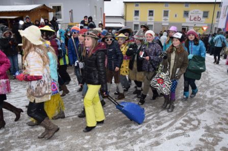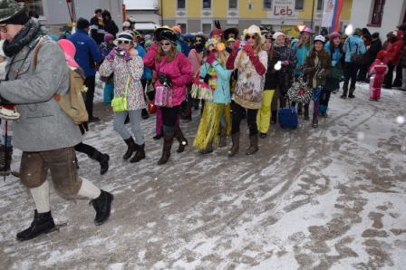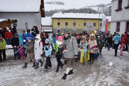 Den Auftakt bildete nicht ein Maskenzug sondern ein Schneesturm. Als sich dieser aber nach wenigen Minuten verzog, waren die Narren und Masken am Wort. Vom Kindergartenkind bis zum Senior war alles vertreten: Dirndelinos, Schienenersatzverkehr, Himmelstreppe, Die Ötscher:Länder , Wanderer aus dem Pielachtal und Ötscherland, Kaiser Leopold, das Englische Königshaus, Dirndlkönig aus der Boding, De Schlofhaubn, die Faulen Säcke, Weißenburg, Wildgehegen, Mafiakapelle, Urlaub am Bauernhof, Wüdhorn, Die Kraft am Land, Tanzen, Almhaus Eibeck, Hippiechor, Sträflinge, G´mahde Wiesn, Faschingspolizei und und und…