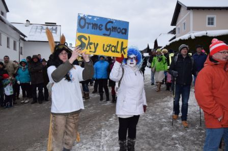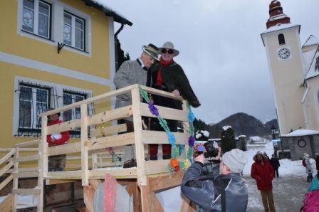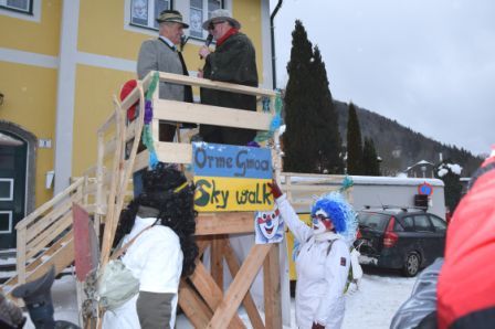 Den Auftakt bildete nicht ein Maskenzug sondern ein Schneesturm. Als sich dieser aber nach wenigen Minuten verzog, waren die Narren und Masken am Wort. Vom Kindergartenkind bis zum Senior war alles vertreten: Dirndelinos, Schienenersatzverkehr, Himmelstreppe, Die Ötscher:Länder , Wanderer aus dem Pielachtal und Ötscherland, Kaiser Leopold, das Englische Königshaus, Dirndlkönig aus der Boding, De Schlofhaubn, die Faulen Säcke, Weißenburg, Wildgehegen, Mafiakapelle, Urlaub am Bauernhof, Wüdhorn, Die Kraft am Land, Tanzen, Almhaus Eibeck, Hippiechor, Sträflinge, G´mahde Wiesn, Faschingspolizei und und und…