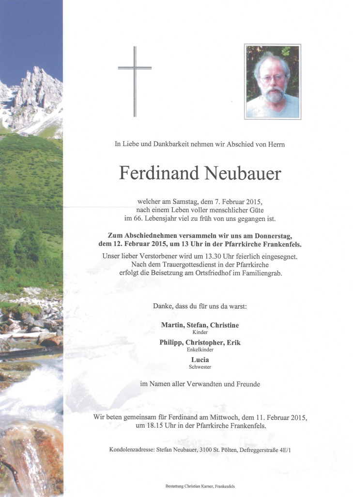 Ferdinand Neubauer verstarb am 07. Februar 2015.