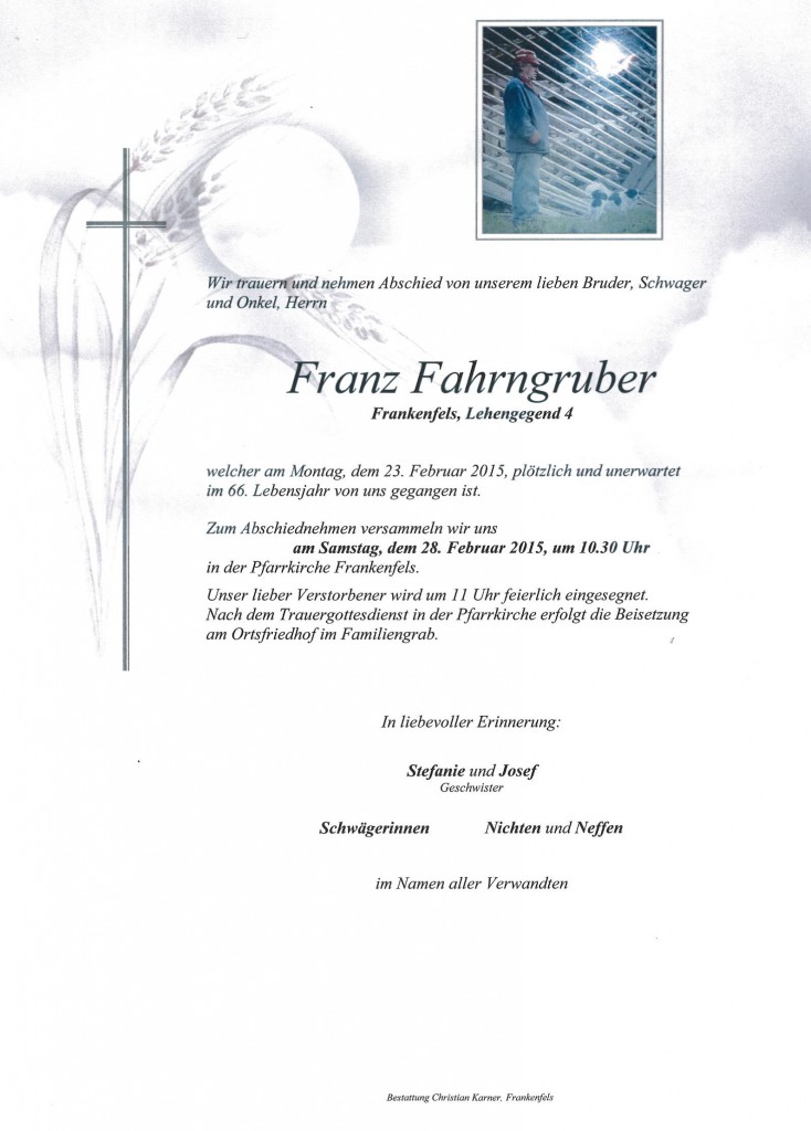 Fahrngruber Franz verstarb am 23. Februar 2015!