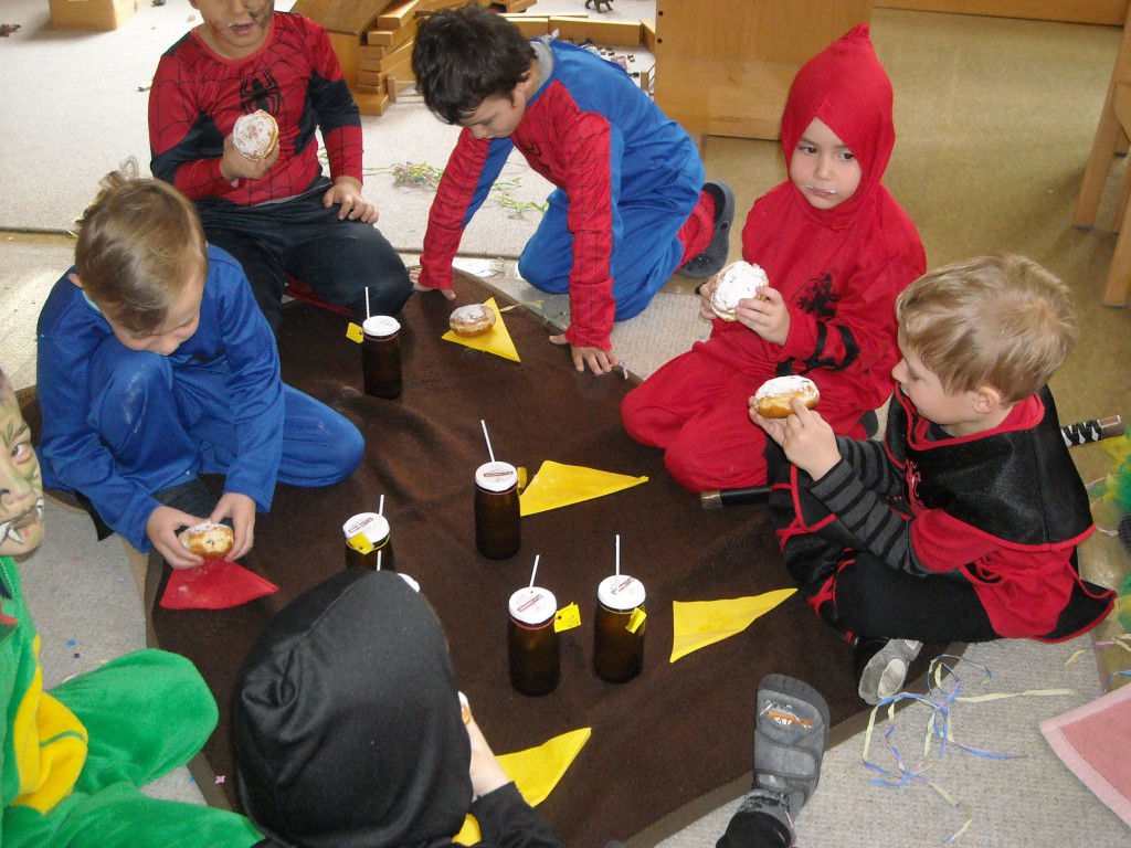 Unter großem Jubel stellte sich die Bäckerei Alfred Leb GmbH bei den Kleinsten im Kindergarten ein. 90 Faschingskrapfen, die eine Abordnung des Elternbeirates verteilte, galt es zu verdrücken.