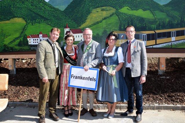Im Anschluss enthüllten die beiden Ehrengäste ein 12 Meter langes und 3 Meter hohes Riesen-Dirndltal-Gemälde, das künftig als Wahrzeichen von Frankenfels den Ortskern schmücken wird.