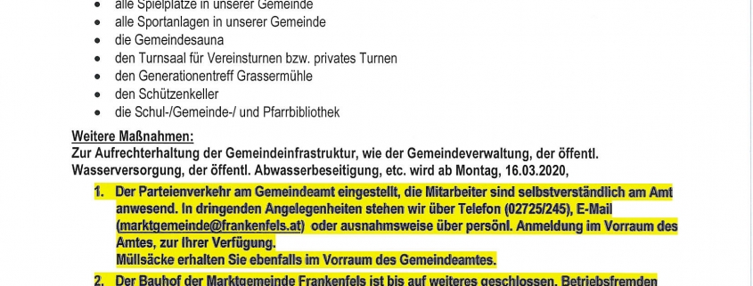 Sie sind hier: Startseite1 / News2 / Gesundheit3 / Coronavirus4 / Bürgermeisterbrief an die Bevölkerung von Frankenfels