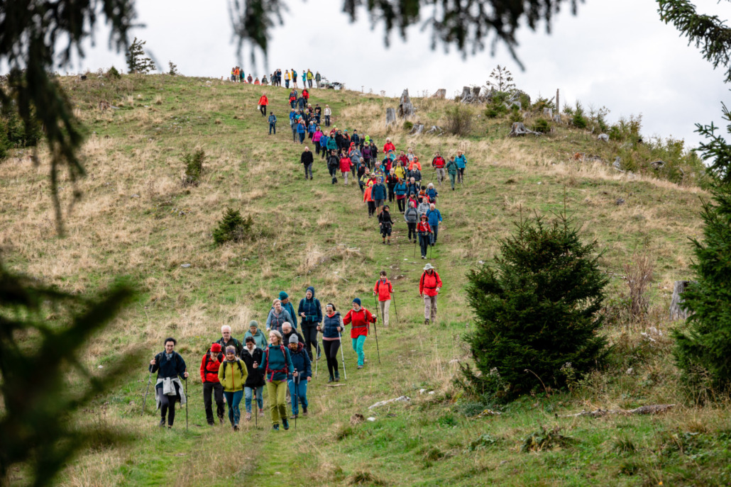 Die Besucher:innen der Gipfelklaenge wandern gemeinsam von Konzert zu Konzert.