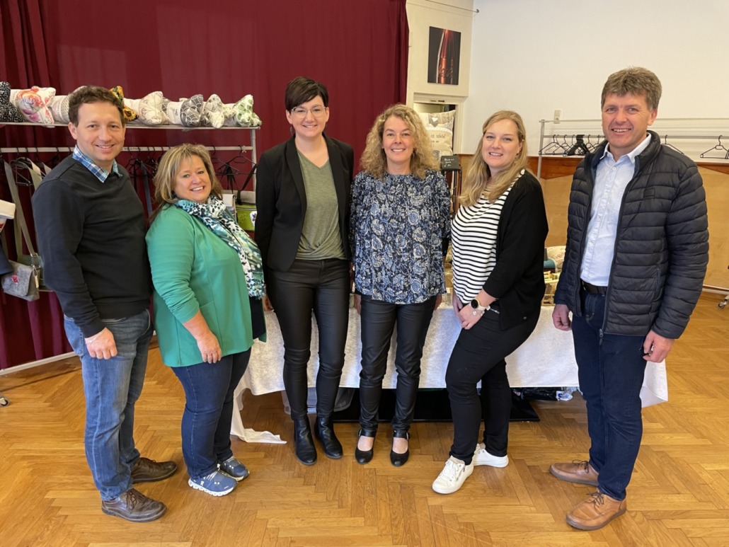 Am Foto Kleinunternehmermesse v.l.n.r.: GR Christoph Wutzl, GGR Elisabeth Wieland-Widder, Sandra Schagerl, Marion Fahrngruber, Stefanie Sturmlechner, Bürgermeister Herbert Winter