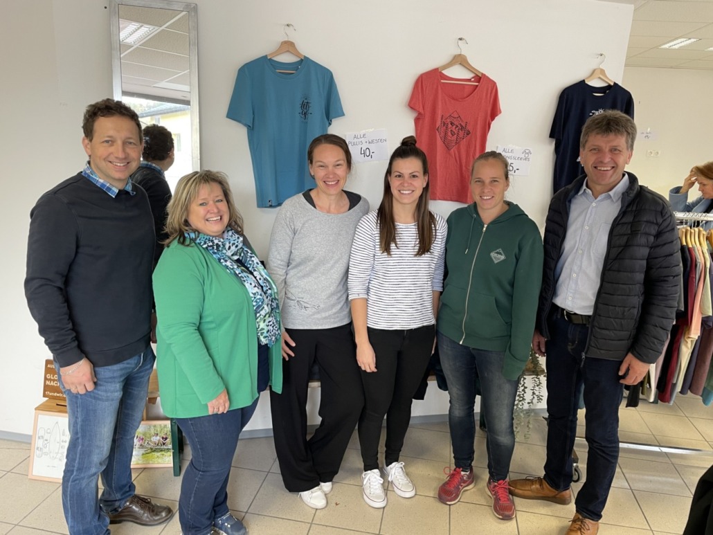 Am Foto PopUp Store v.l.n.r.: GR Christoph Wutzl, GGR Elisabeth Wieland-Widder, Ecologde Inhaberin Kerstin Tuder, BlauRosa Inhaberin Theresa Schindlegger, Ecolodge Inhaberin Denise Tuder, Bürgermeister Herbert Winter
