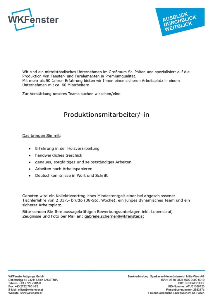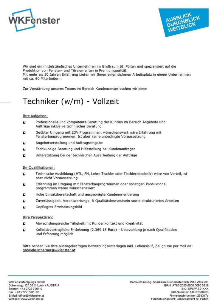 Stellenausschreibungen für Firma WKFenster