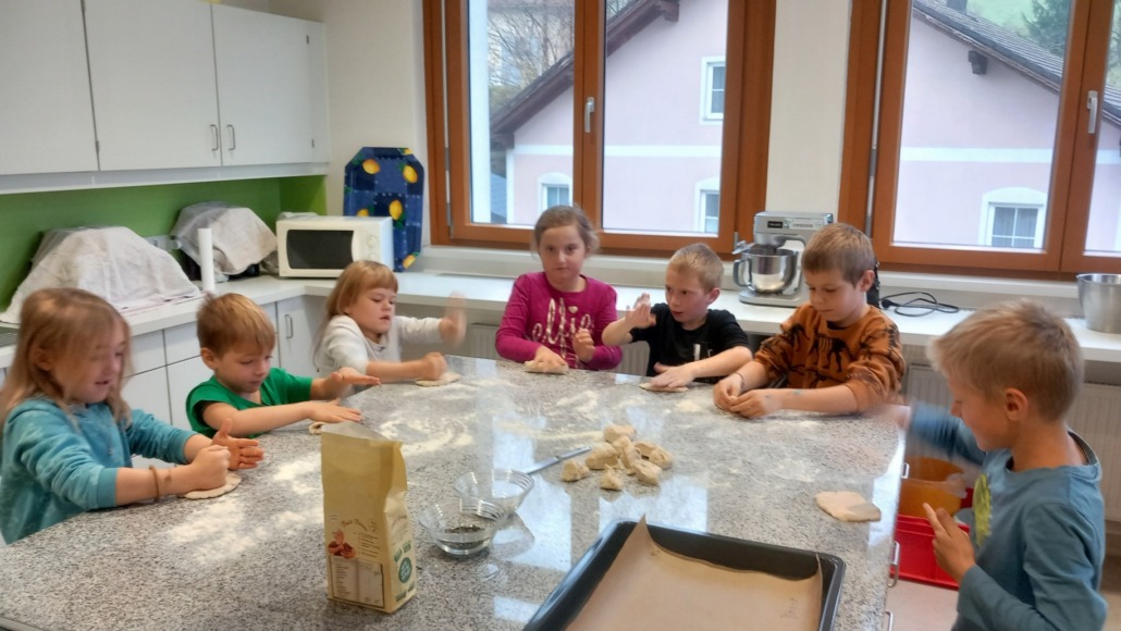 Beim Stationenbetrieb durften die Kinder dann selbst aktiv werden: Es wurden Weckerl gebacken, Butter geschüttelt, Topfenaufstriche zubereitet und das Melken mit der Hand an einem Gummieuter ausprobiert.