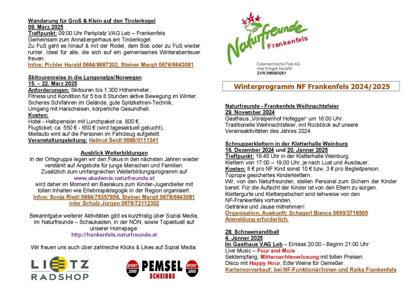 Sie sind hier: Startseite1 / News2 / Veranstaltungen3 / Das Naturfreunde Frankenfels Winterprogramm!