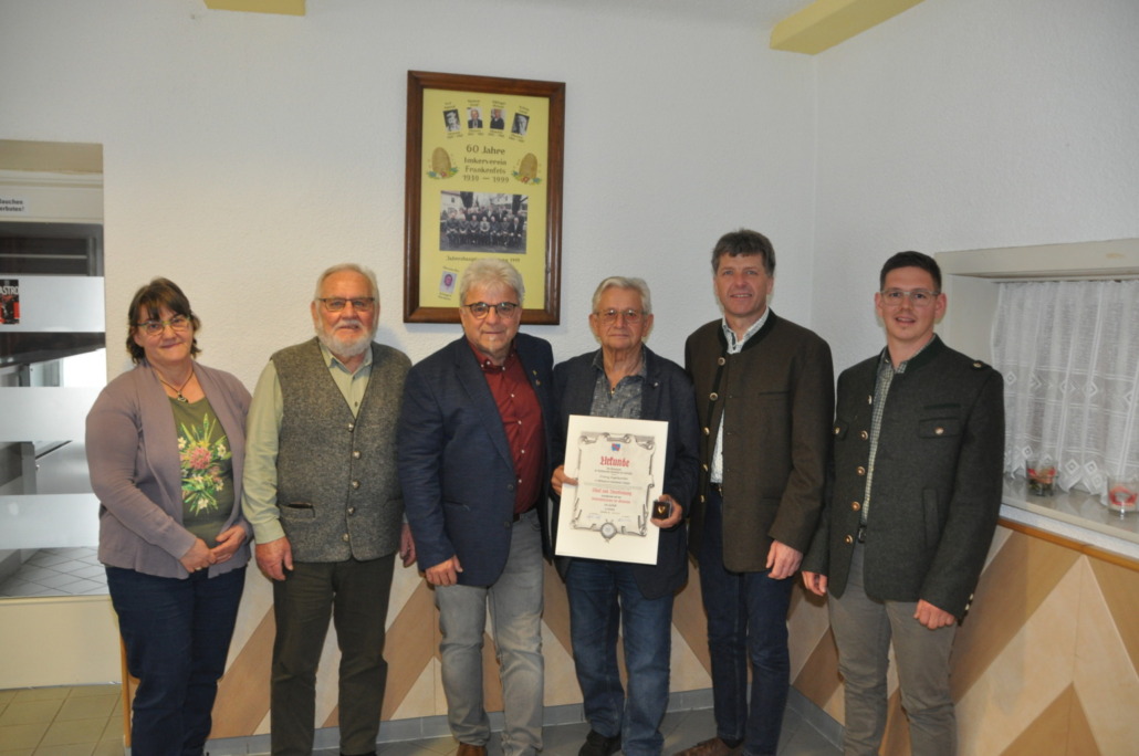 Bei der Jahreshauptversammlung des Imkervereines Frankenfels im GH VAG-Leb wurde dem langjährigen Obmann Franz Aigelsreiter gedankt. Für seine Verdienste wurde ihm das Verdienstabzeichen in Gold der Marktgemeinde Frankenfels verliehen. Mit nur 16 Jahren trat er den Frankenfelser Imkern bei und ist mittlerweile seit 57 Jahren Mitglied. 36 Jahre führte er als Obmann die Imkergemeinschaft. In seiner Laudatio blickte der Bürgermeister unter anderem auf die Errichtung des Bienenlehrpfades entlang der Dirndlmeile, der mit Infotafeln und einem Schaubienenstock das Leben der Bienen für Spaziergänger erlebbar macht. Im Jahr 2019 organisierte er als Obmann mit seinem Imkerteam das große Honigfest im Rahmen der 80-Jahr-Feier der Imker, das ein weiteres Highlight in seiner langjährigen Tätigkeit darstellt. Im Zuge der Versammlung wurde die Gelegenheit genutzt um dem aktuellen Obmann Franz Pfeffer zum 60. Geburtstag zu gratulieren und ihm für seinen aktive Vereinstätigkeit zu danken.