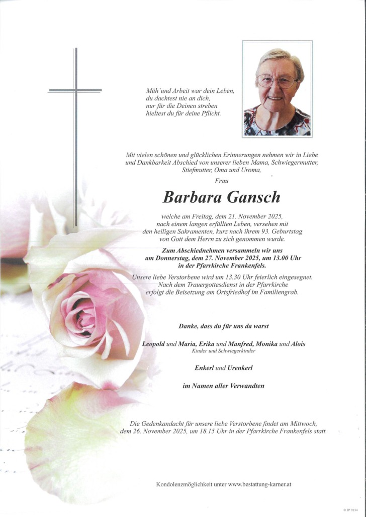 Wir trauern um … Barbara Gansch!