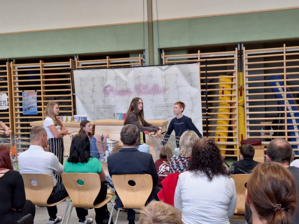 /von Isabella AigelsreiterEin besonderes Highlight fand an unserer Schule statt: Das Lastkrafttheater gastierte bei uns und präsentierte die Komödie „Pension Schöller“. Das humorvolle Stück begeisterte mit viel Witz, überraschenden Wendungen und skurrilen Figuren. Es war ein unterhaltsames Theatererlebnis, das bei Schülerinnen, Schülern und Lehrkräften gleichermaßen für Begeisterung sorgte.