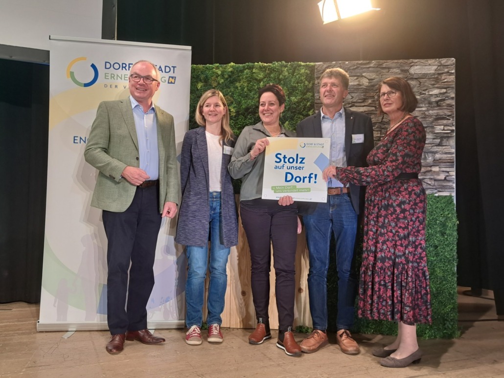 Bei der Veranstaltung wurde auch die Wichtigkeit der Dorferneuerungsvereine betont, welche in den Gemeinden und Ortsteilen wichtige Arbeit leisten und durch ihre Projekte zu einer Erhöhung der Lebensqualität beitragen. LH-Stellvertreter Stephan Pernkopf betonte, dass es oftmals erst durch die Fördermaßnahmen der NÖ Dorferneuerung möglich wird, auch kleine Projekte umzusetzen, Material anzukaufen und damit Anliegen direkt vor Ort von der Bevölkerung und für die Bevölkerung umzusetzen. Die „Dorferneuerungsfrontfrauen“ Andrea Schagerl und Margit Niederer durften mit Stolz eine Plakette für ihren Dorferneuerungsverein übernehmen.
