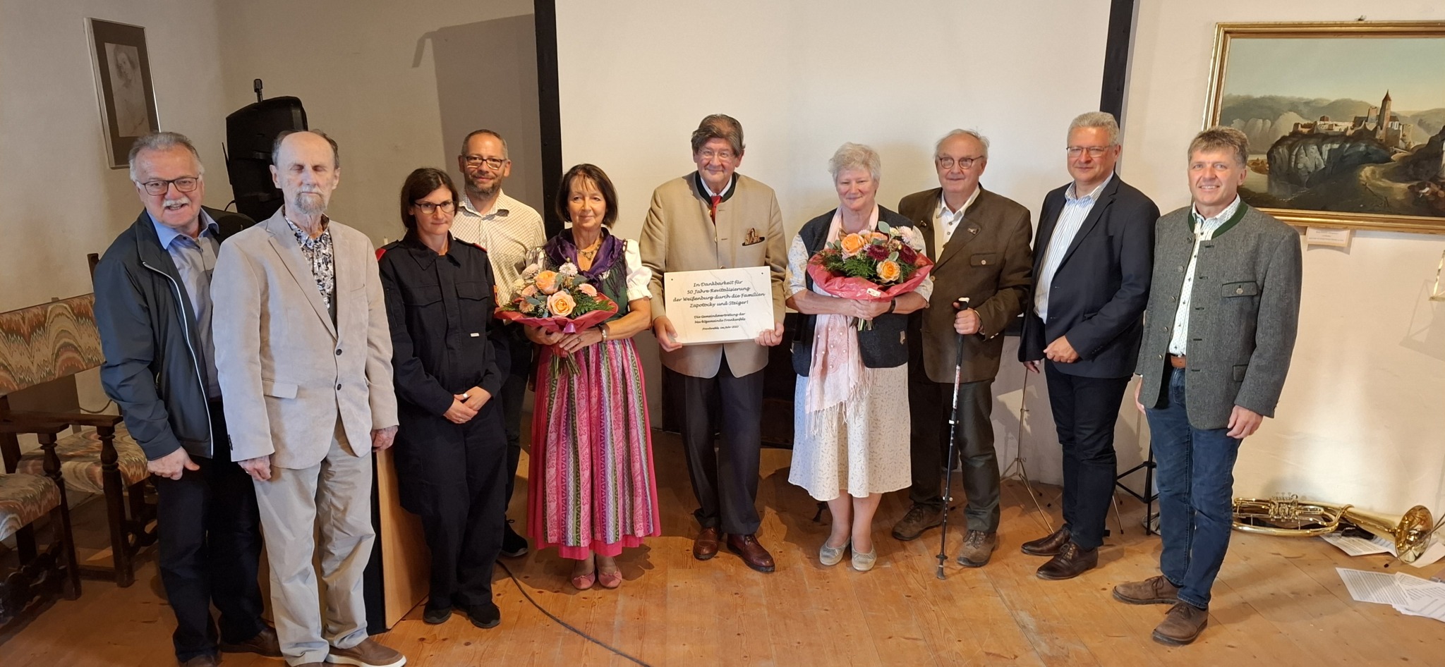 Auch Bürgermeister Herbert Winter ließ es sich nicht nehmen, persönlich zu gratulieren. Mit einem Geschenk bedankte er sich bei den Familien Zapotocky und Steiger für ihren unermüdlichen Einsatz zum Erhalt der Burg: