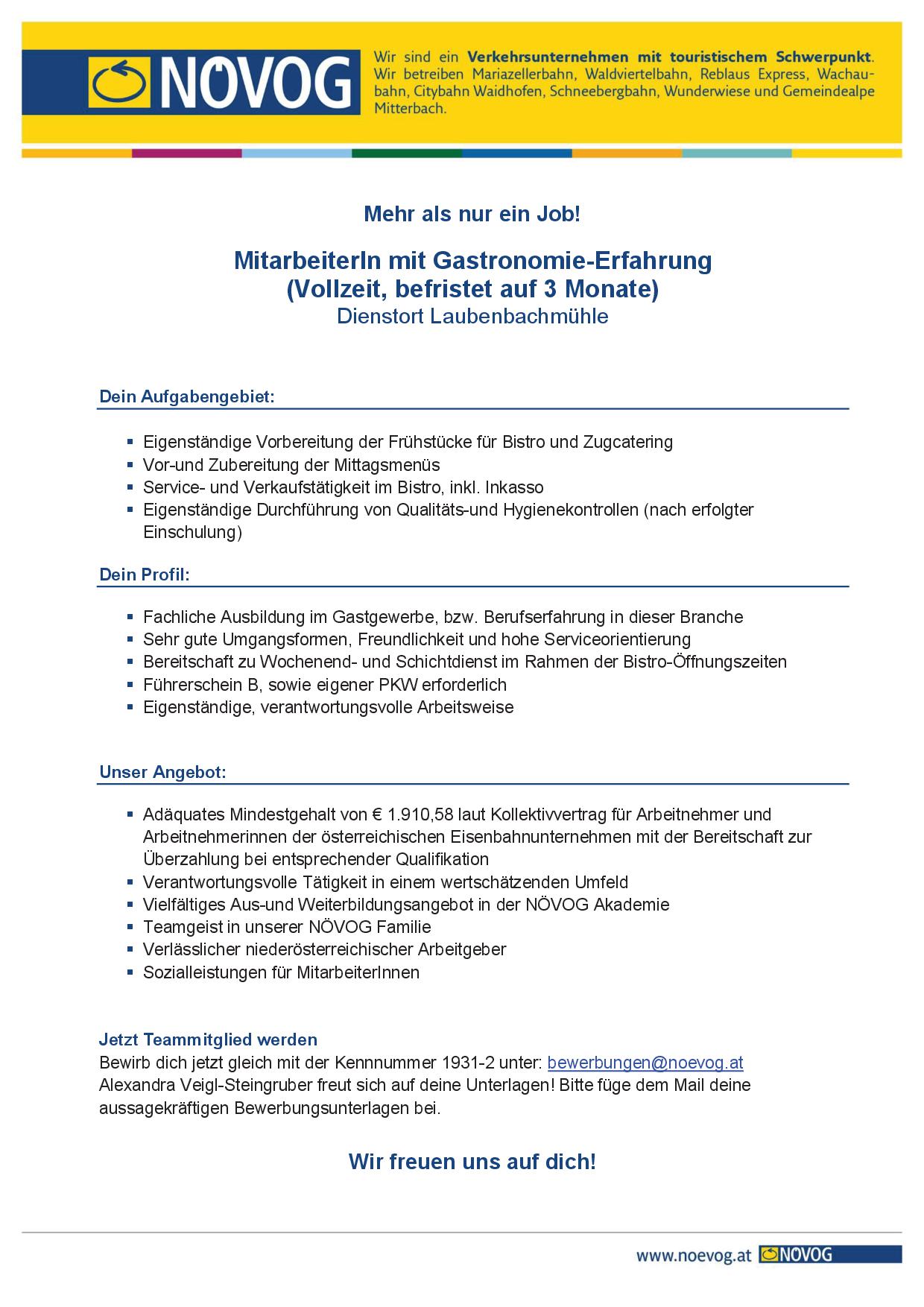 Weitere Informationen zur NÖVOG und zur Mariazellerbahn gibt es im Internet unter www.noevog.at oder www.mariazellerbahn.at und im NÖVOG Infocenter (täglich 07:30 bis 19:00 Uhr) unter 02742/ 360 990-1000.