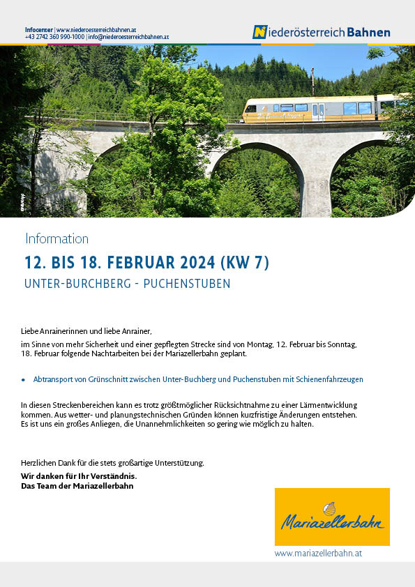Weitere Informationen zu den Niederösterreich Bahnen gibt es unter www.niederoesterreichbahnen.at sowie im Infocenter unter 02742 / 360 990-1000 (täglich von 7:30 Uhr bis 19:00 Uhr).