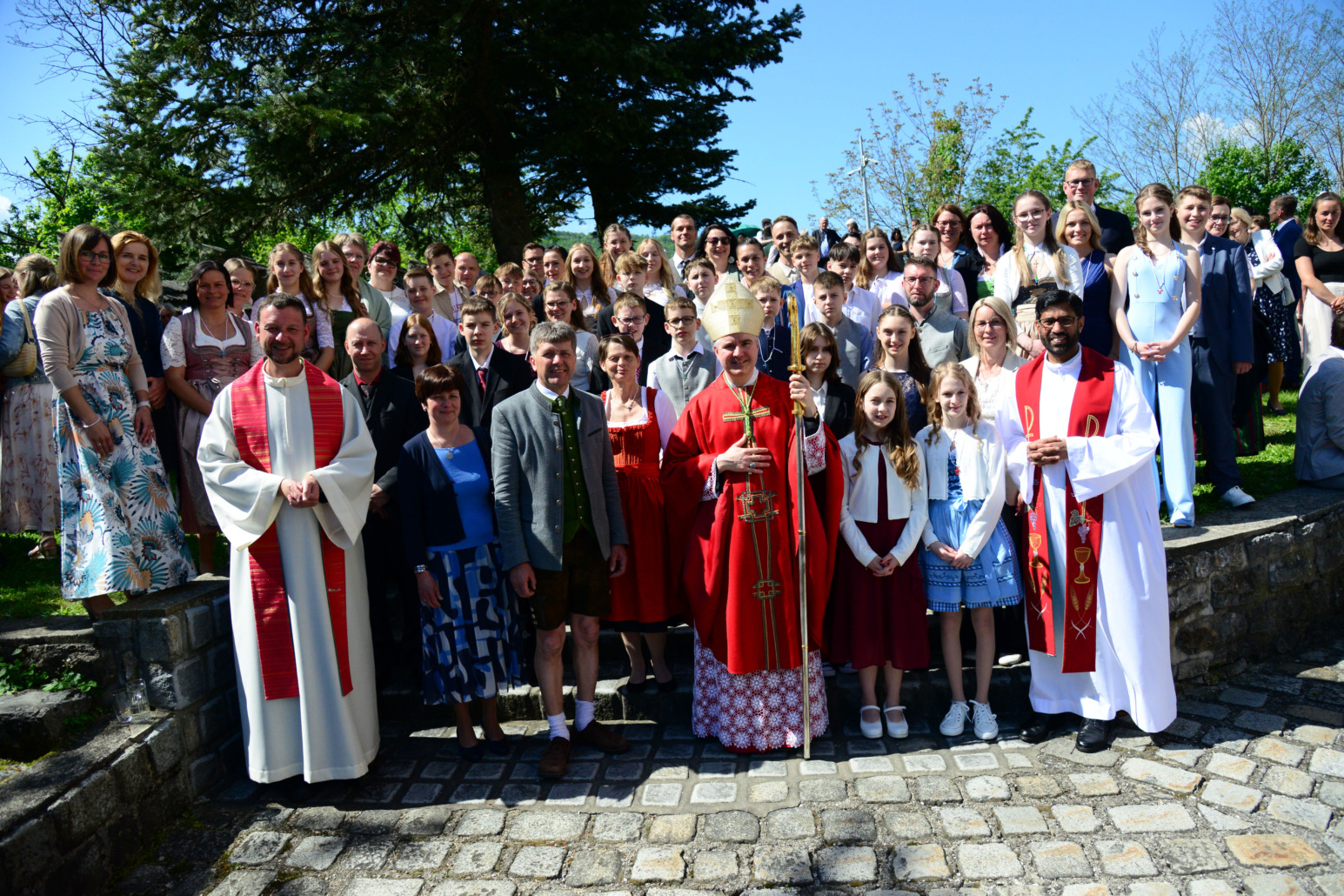 Bei strahlendem Sonnenschein begrüßte der Blasmusikverein Kirchberg unsere Firmlinge, sowie Firmlinge aus den Pfarren Schwarzenbach und Kirchberg vor der Pfarrkirche. Gemeinsam mit Abt Patrick, P. Altmann und Kaplan Martin zogen sie zum Festgottesdienst in die Pfarrkirche ein.