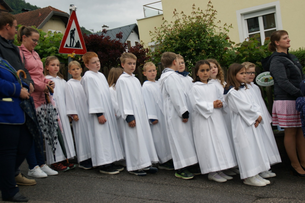 /von Isabella AigelsreiterAm Sonntag, 26. Mai feierten wir in unserer Gemeinde das Fronleichnamsfest, musikalisch umrahmt vom TMV, in der Pfarrkirche. Im Anschluss an das Hochamt begann die Prozession mit Abordnungen der Marktgemeinde, Vereinen, Erstkommunionkindern und vielen Gläubigen zur Anima-Christi-Kapelle und der Josefs-Kapelle, wo der Ortssegen erteilt wurde.