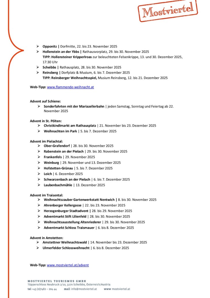 Nähere Details zum Advent im Mostviertel finden Sie unter folgendem Link:
