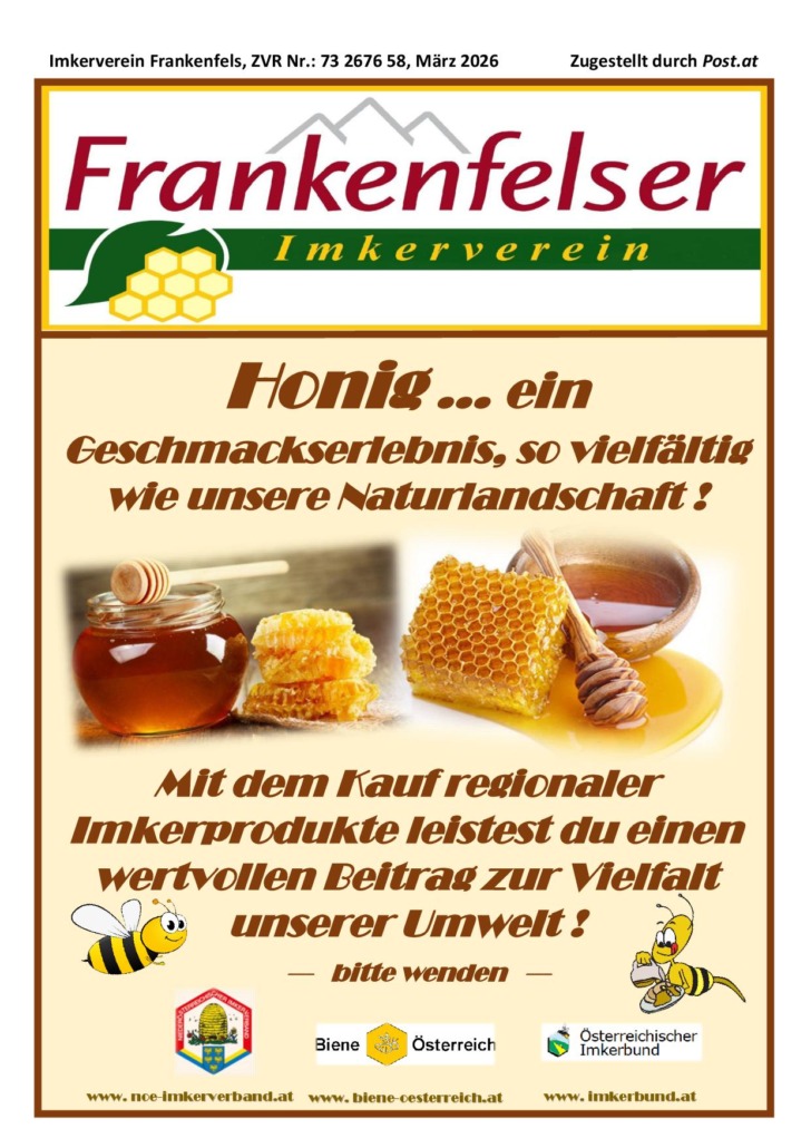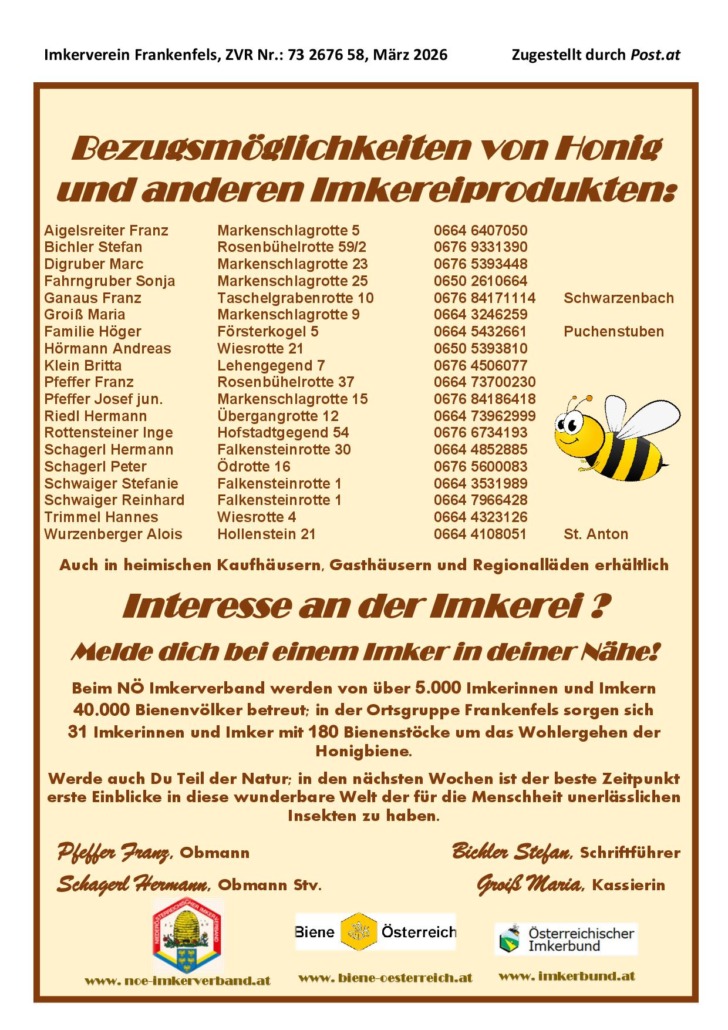 Imkerverein Frankenfels – Jahreshauptversammlung am Sonntag 29. März im VAG Leb